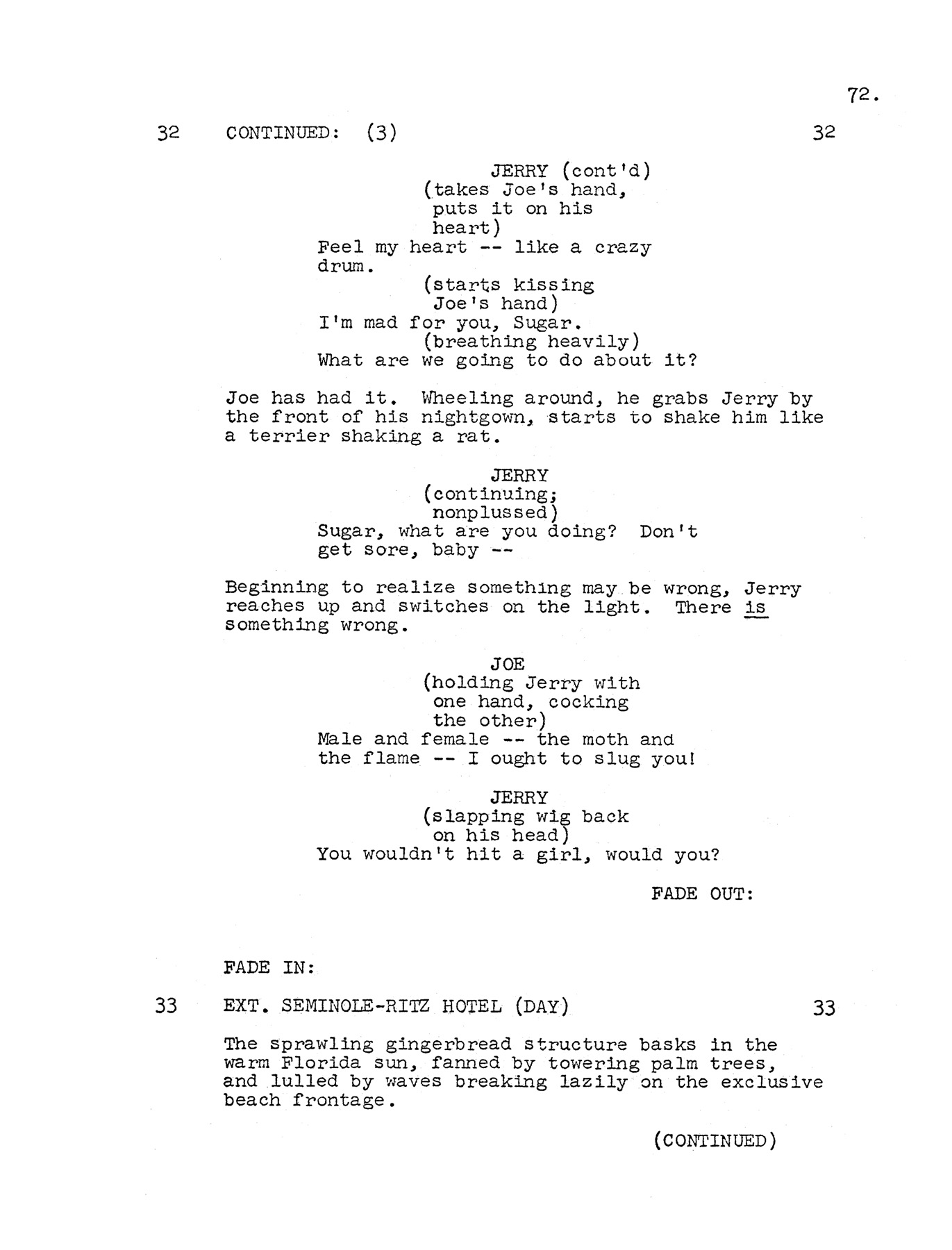 - "The script for Some Like It Hot was not completed until four days before shooting was finished." The New York Times, 1/24/60