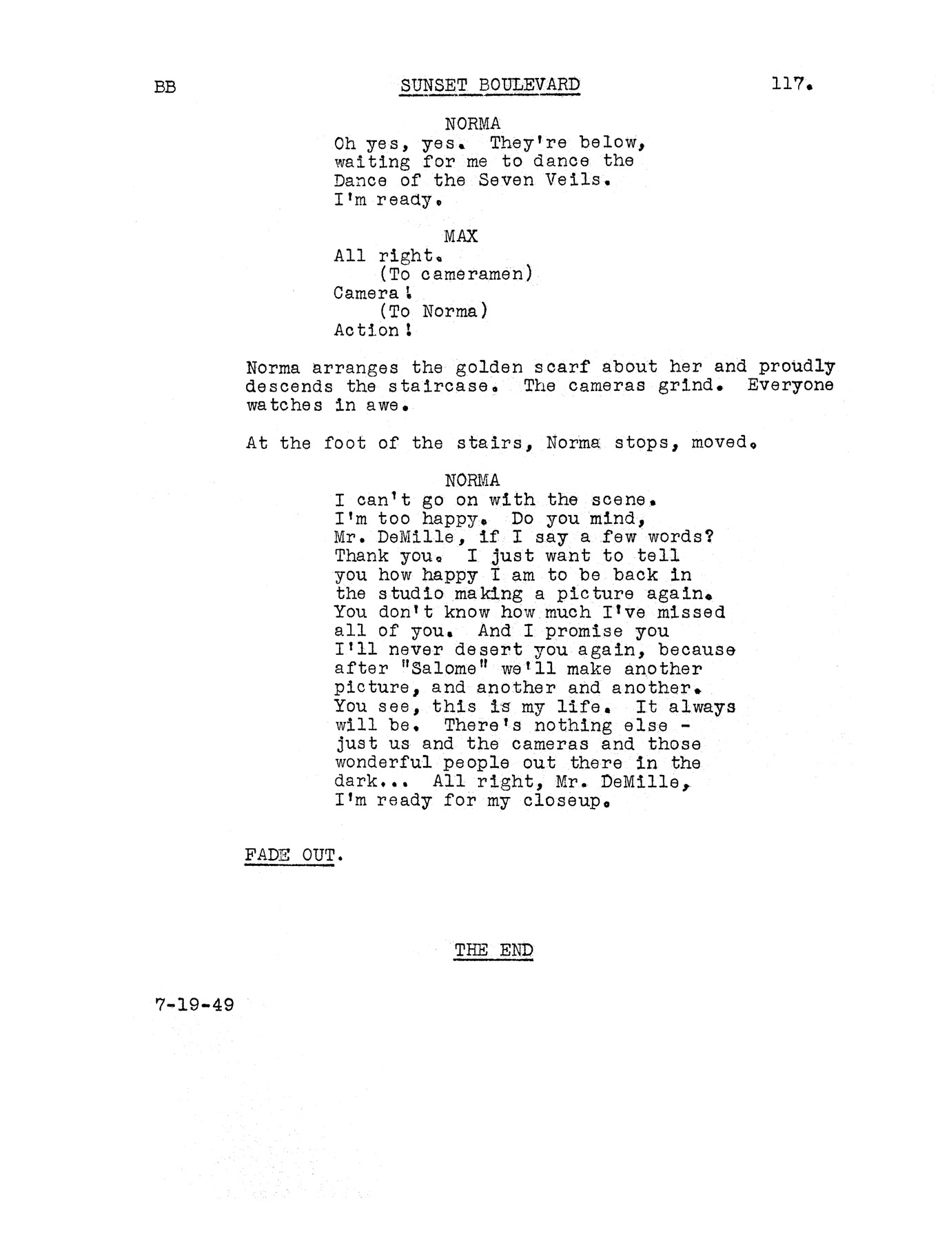 • Incorporated into the script, "Young Fellow" was Cecil B. De Mille's nickname for Gloria Swanson when they worked together in the 1920s. Sunset Blvd. The Production, online analysis at www.geocities.com/- Hollywood/Theater/6980/sbprod.htm